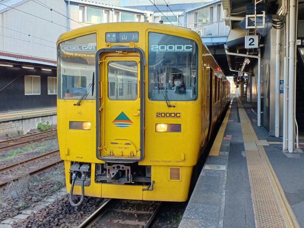 JR九州の誇る高性能3扉気動車、キハ200系!角形ライトがかっこいいですよね。黄色い311系にしか見えないのは私だけでしょうか。